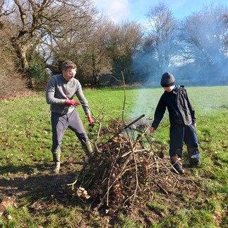 Some of the group had just as much fun starting a bonfire using a flint and the raw materials around - despite the recent damp weather!